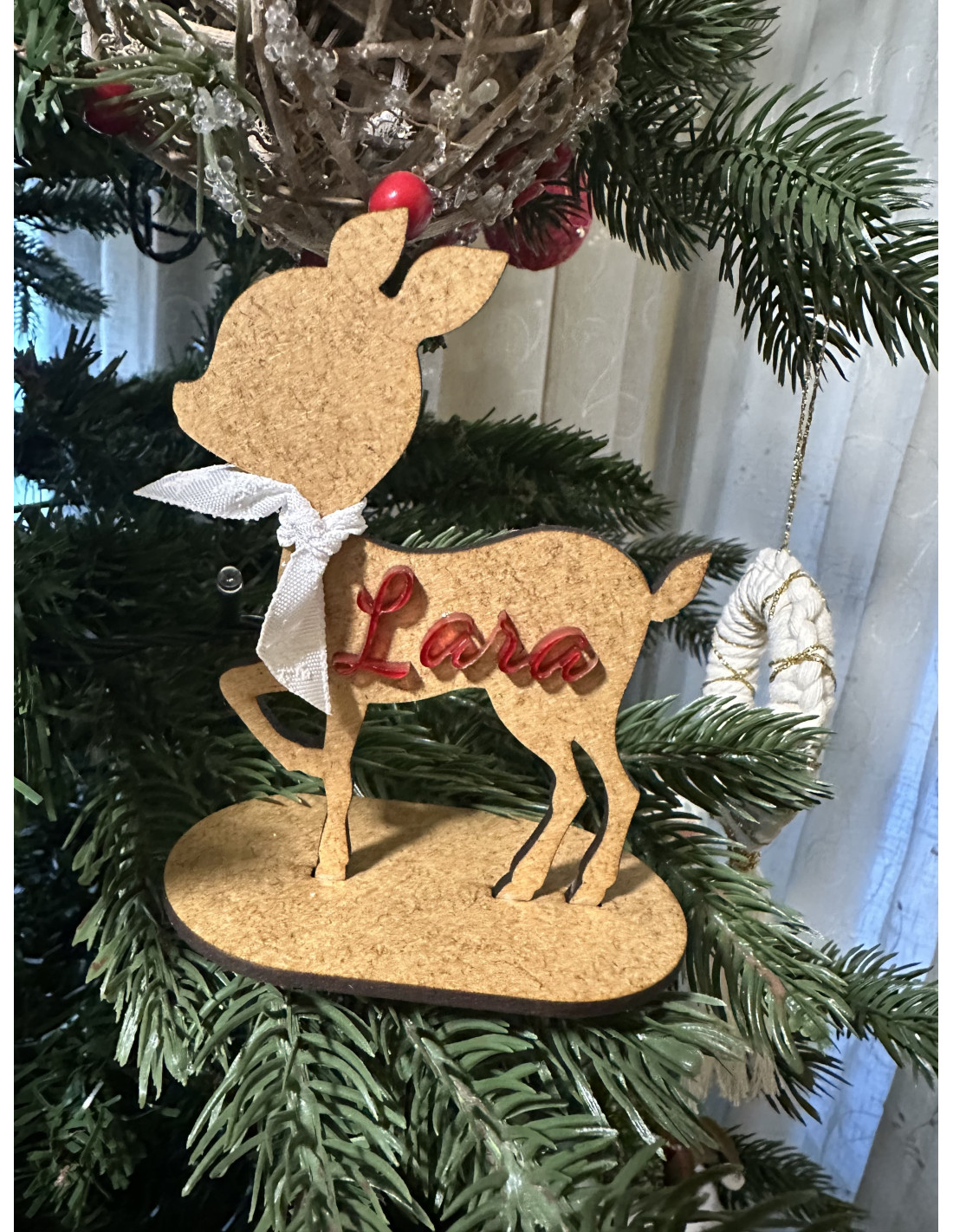 El diseño está cuidado al detalle y realizado de forma artesanal, garantizando un acabado limpio y duradero. Es perfecto para colocar en estanterías, recibidores, mesas decorativas o para regalar en Navidad.